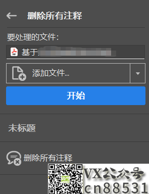 确认要处理的PDF文件是否正确,点击开始即可删除所有注释,如下图。删除所有注释后,不要忘记保存PDF文件,否则操作不会生效。