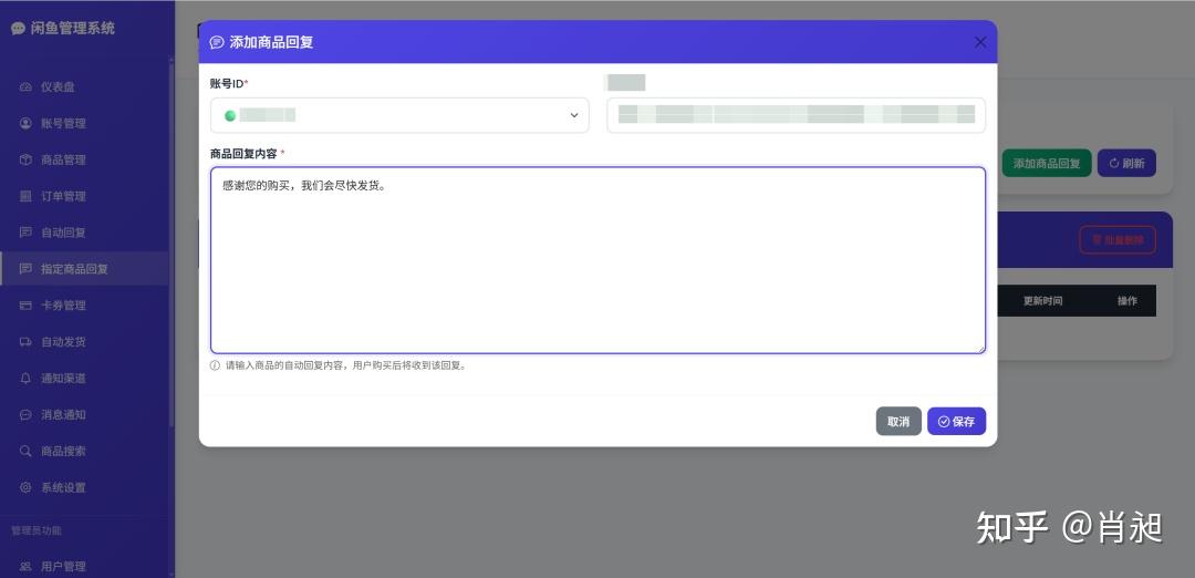 xianyu-auto-reply 是一个功能完整的闲鱼自动回复和管理系统,支持多用户、多账号管理,具备智能回复、自动发货、自动确认发货、商品管理等企业级功能。。
