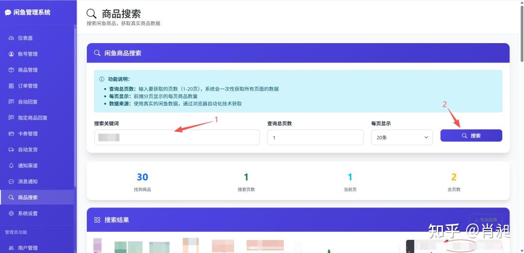 此功能可以根据关键字搜索闲鱼的商品