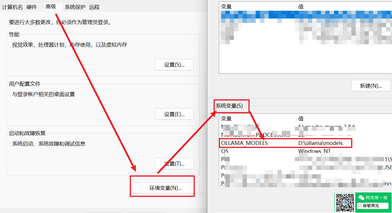 修改环境变量,在“新建系统变量”窗口中,输入变量名OLLAMA_MODELS,变量值为你希望的模型存储路径(例如D:\ollama\models