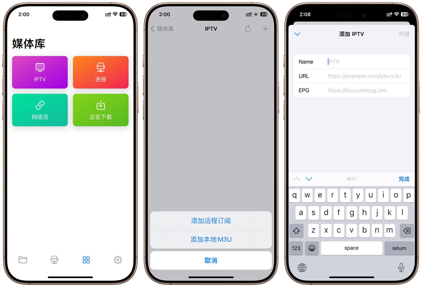 大部分IPTV项目都可以直接使用m3u地址,比如在IOS上的Fileball应用,免费版本允许设置一个IPTV源,我们选择添加远程订阅,然后填入我们自己NAS提供的URL地址。